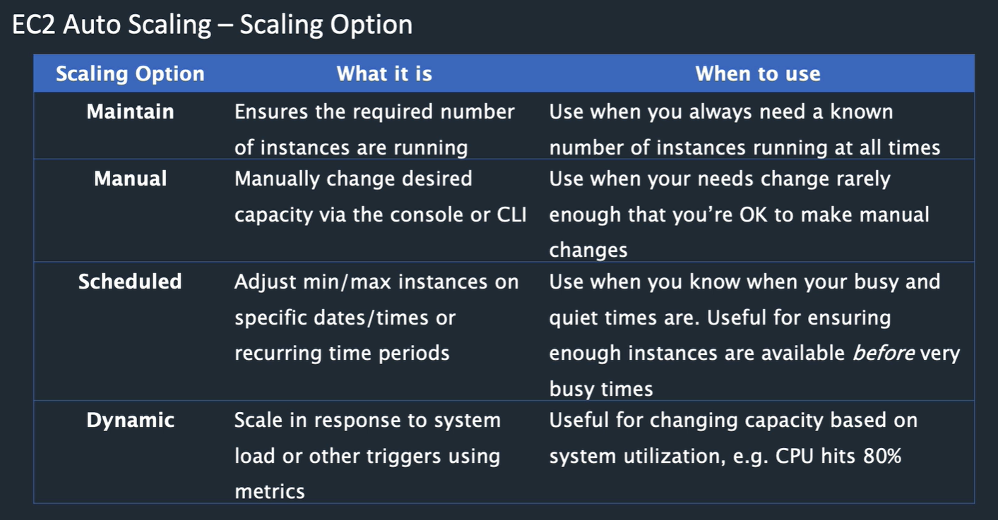 Can suspend certain behaviors e.g. termination, replace unhealthy Cooldown period: Warmup period: