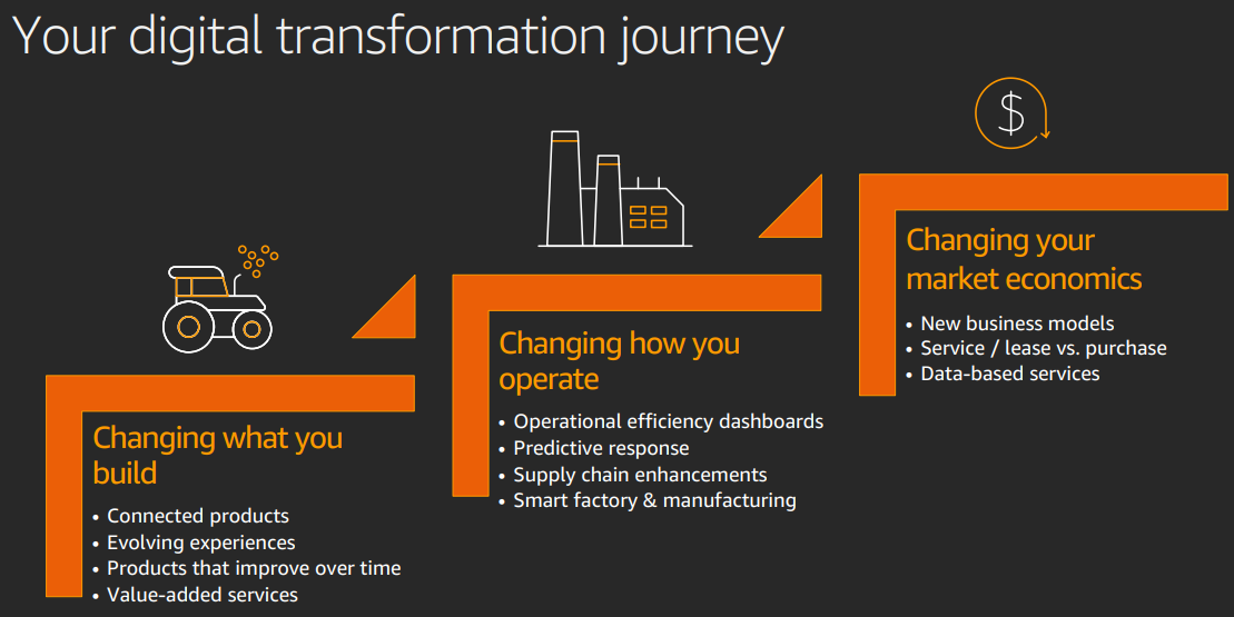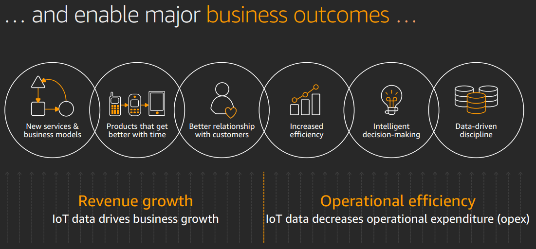 Know the state of everything! products that get better with time because can update. Understand what customers want. Operational efficiency: manufacturing, processes, moving to data driven.