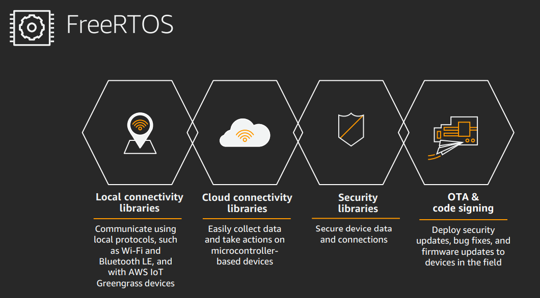 FreeRtos: low power, over teh air updates. Send data somewhere else to process it.